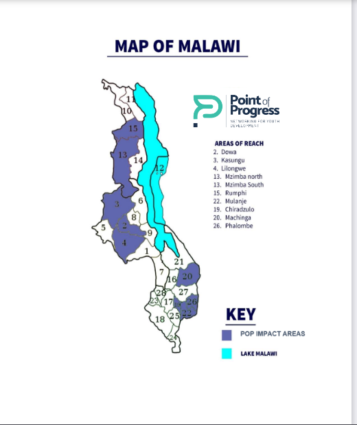 Point of Progress (POP) is dedicated to transforming the lives of youth, women, and children in Malawi through its five key thematic areas: Sustainable Agriculture and Food Security, Education and Skills Development, Gender Equality and Women’s Empowerment, Youth Empowerment and Employment, and Health and Well-being. POP aims to achieve a significant positive impact by improving livelihoods, empowering marginalized groups, and contributing to sustainable development in Malawi